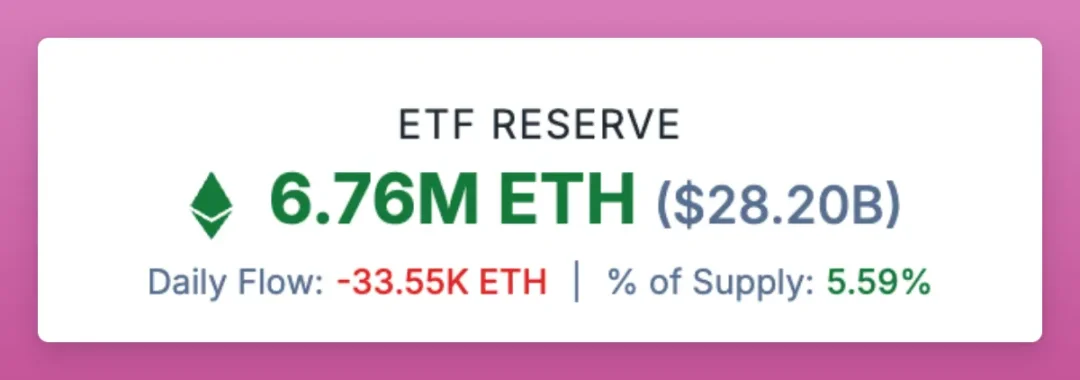 以太坊 ETF 持有量占以太坊总供应量的 5.59%。