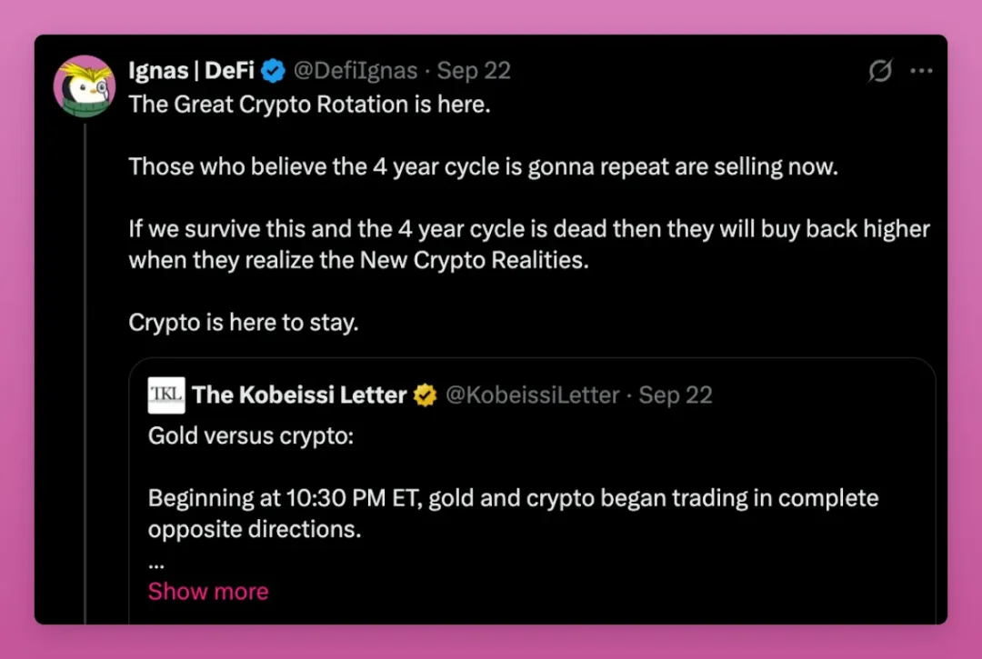 对加密原生参与者而言,最重要的问题是:四年周期是否已终结?我身边已有不少人开始抛售,期待周期重演。但我认为,随着加密货币新秩序的到来,四年周期不会重演。这一次,情况真的不同了。