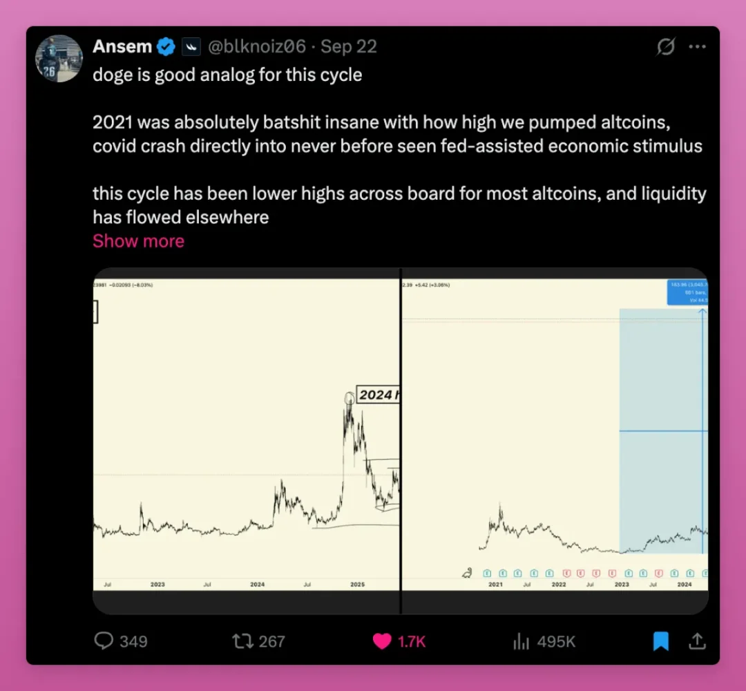 Ansem 的观点很有道理:纯粹的投机热潮已达顶峰。如今的新主流是有营收支撑,唯有具备营收能力,才能实现可持续发展。拥有产品市场契合度(PMF)且能产生手续费的应用将会蓬勃发展,其余则难有起色。